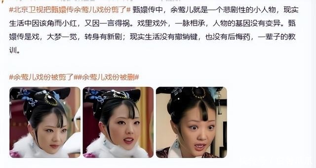 有很多忠实的剧迷也发现,在这场风波结束以后余答应的戏份都被删光,《甄嬛传》也算是保住了。